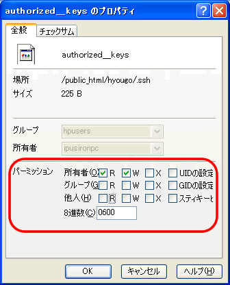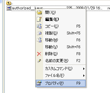 「autorized_keys」を右クリックし、「プロパティ」を開いてください。